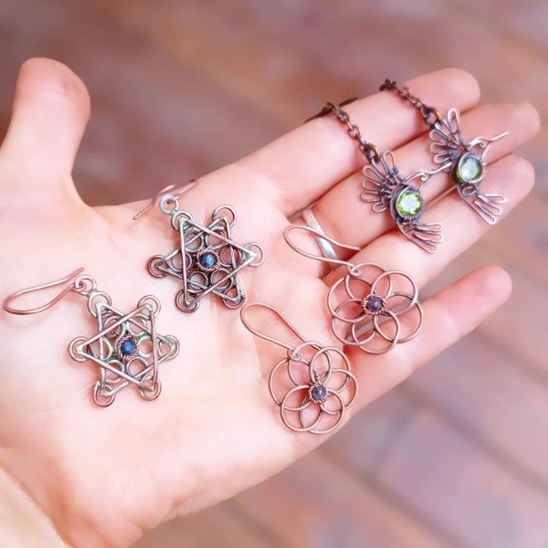 Aros de cobre con lapislázuli.