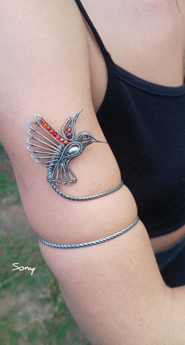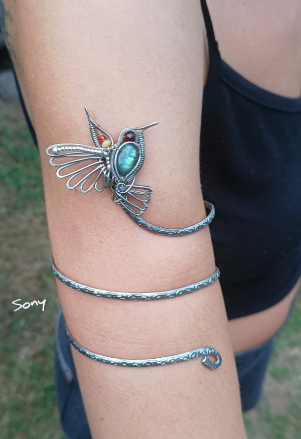 Brazaletes colibrí de alpaca. Modelos disponibles con distintas piedras.
