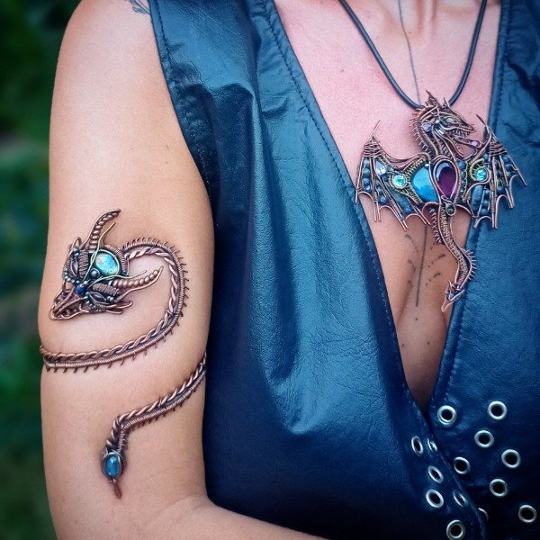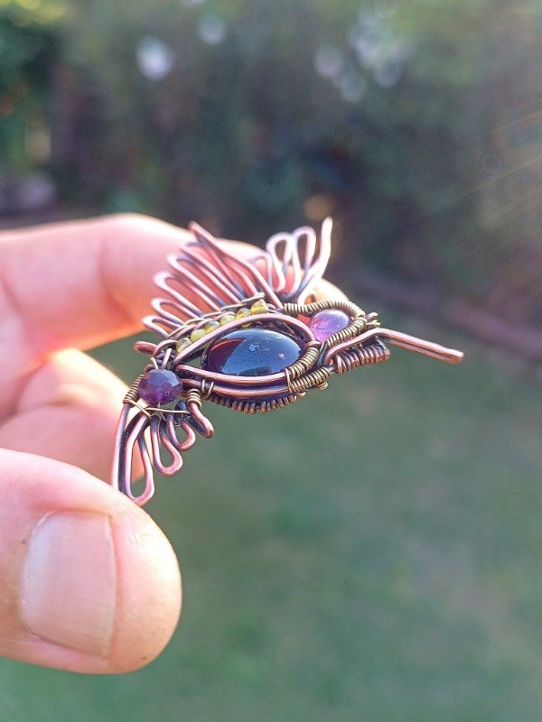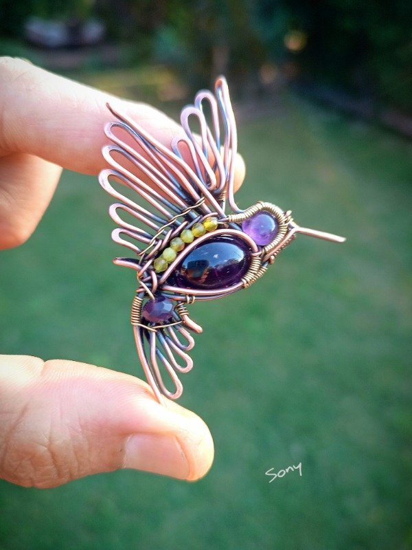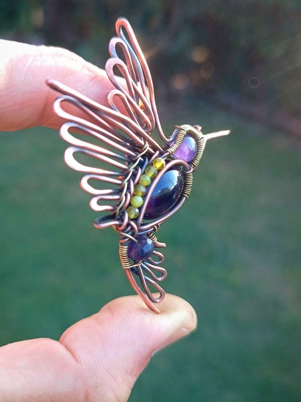 Pieza de cobre y bronce con amatista y citrino.
