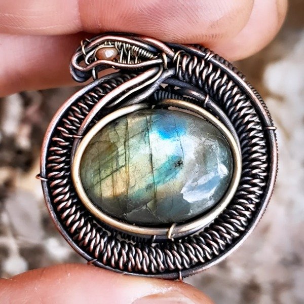 Realizado en cobre y bronce con labradorita.