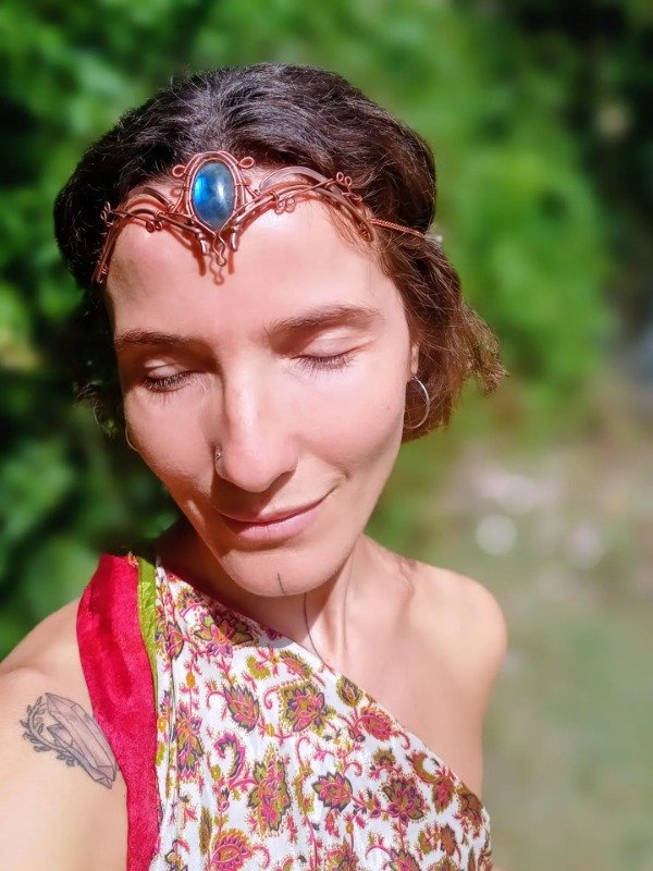 Pieza de cobre con labradorita
