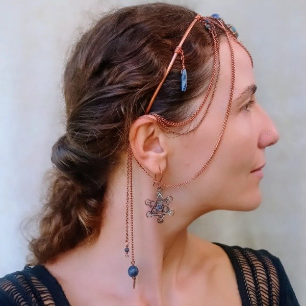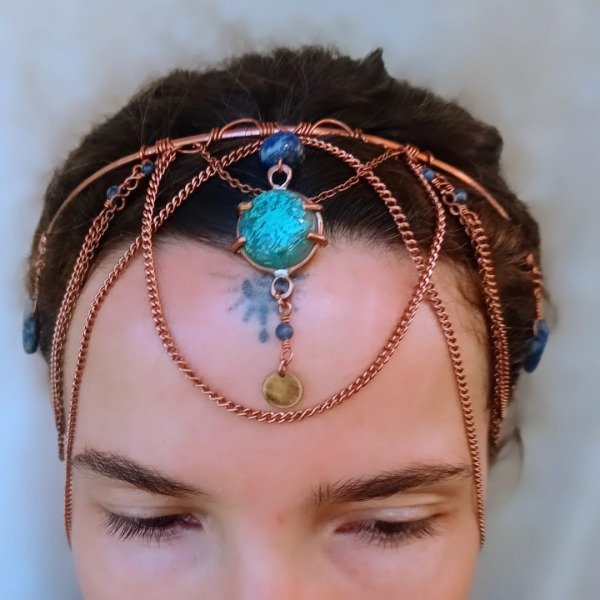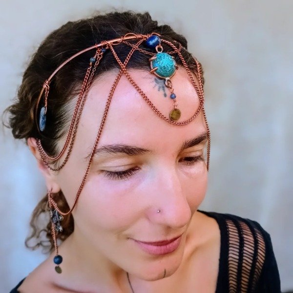 Pieza de cobre con turquesa, lapislazuli y sodalita.