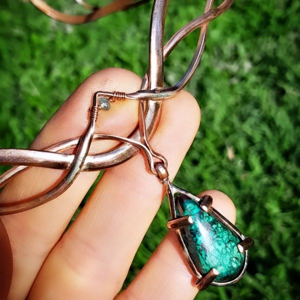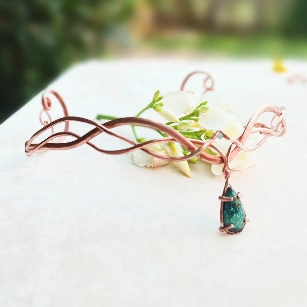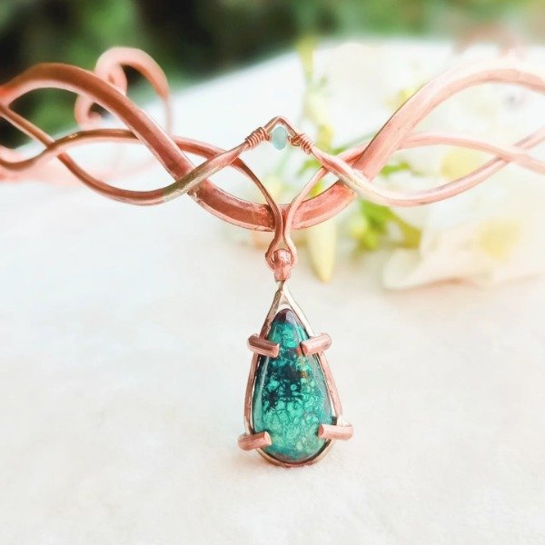 Corona de cobre con crisocola y apatito.