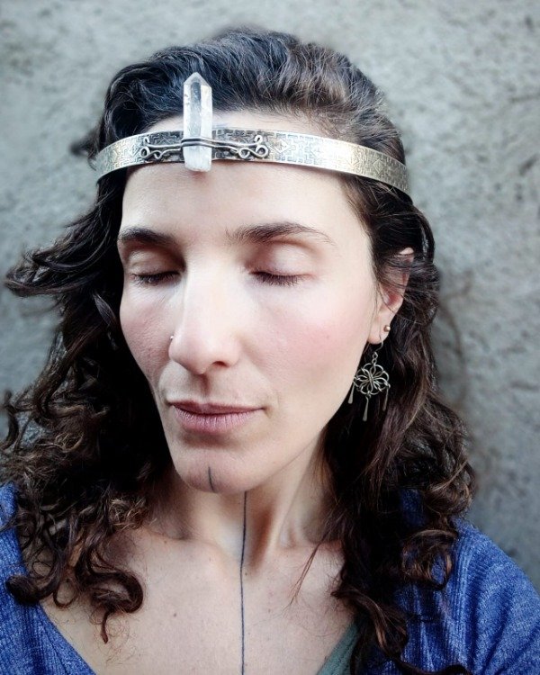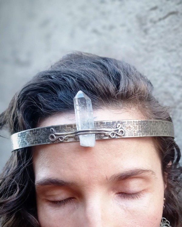 Corona de alpaca con cuarzo lemuriano.
