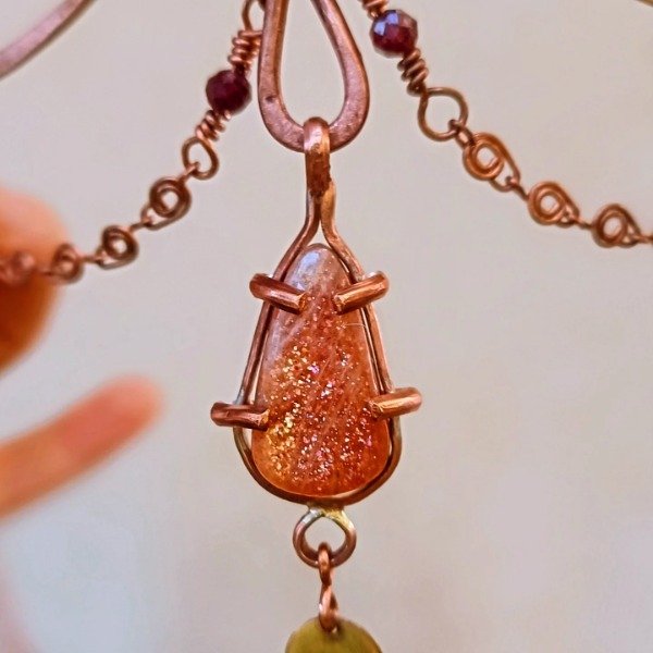 Pieza de cobre con piedra del sol y granate.