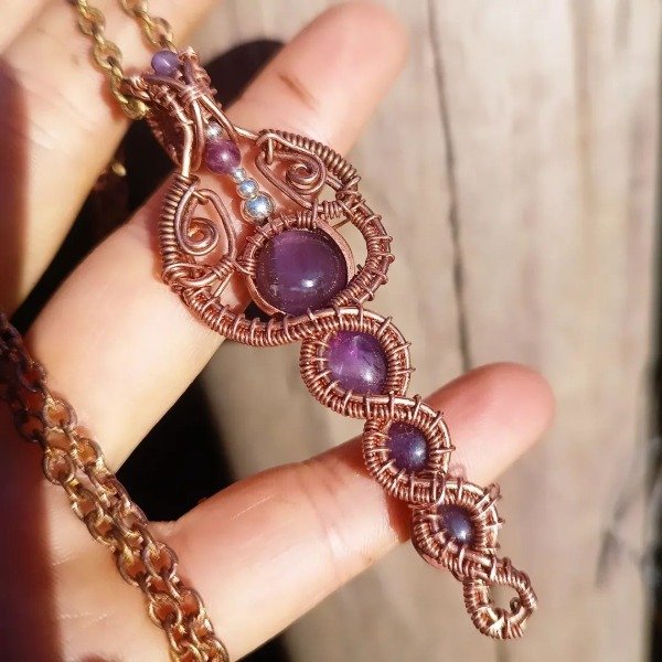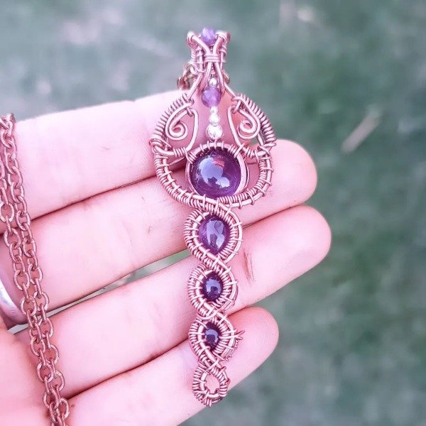Pieza realizada en cobre con detalles en plata con amatista.