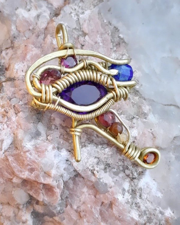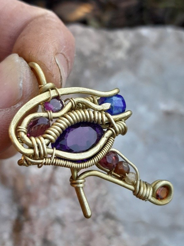 Realizado en bronce con amatista, lapizlazuli, citrino y granate.